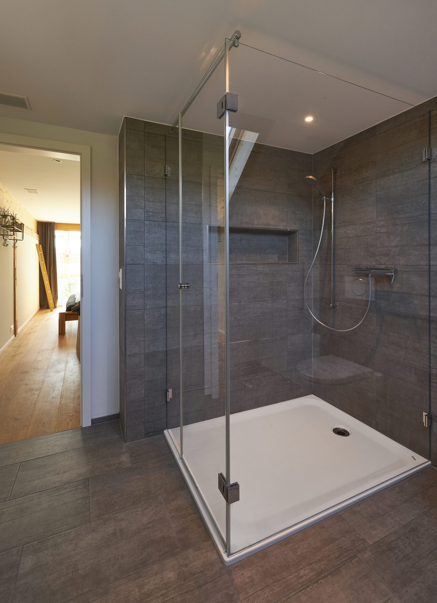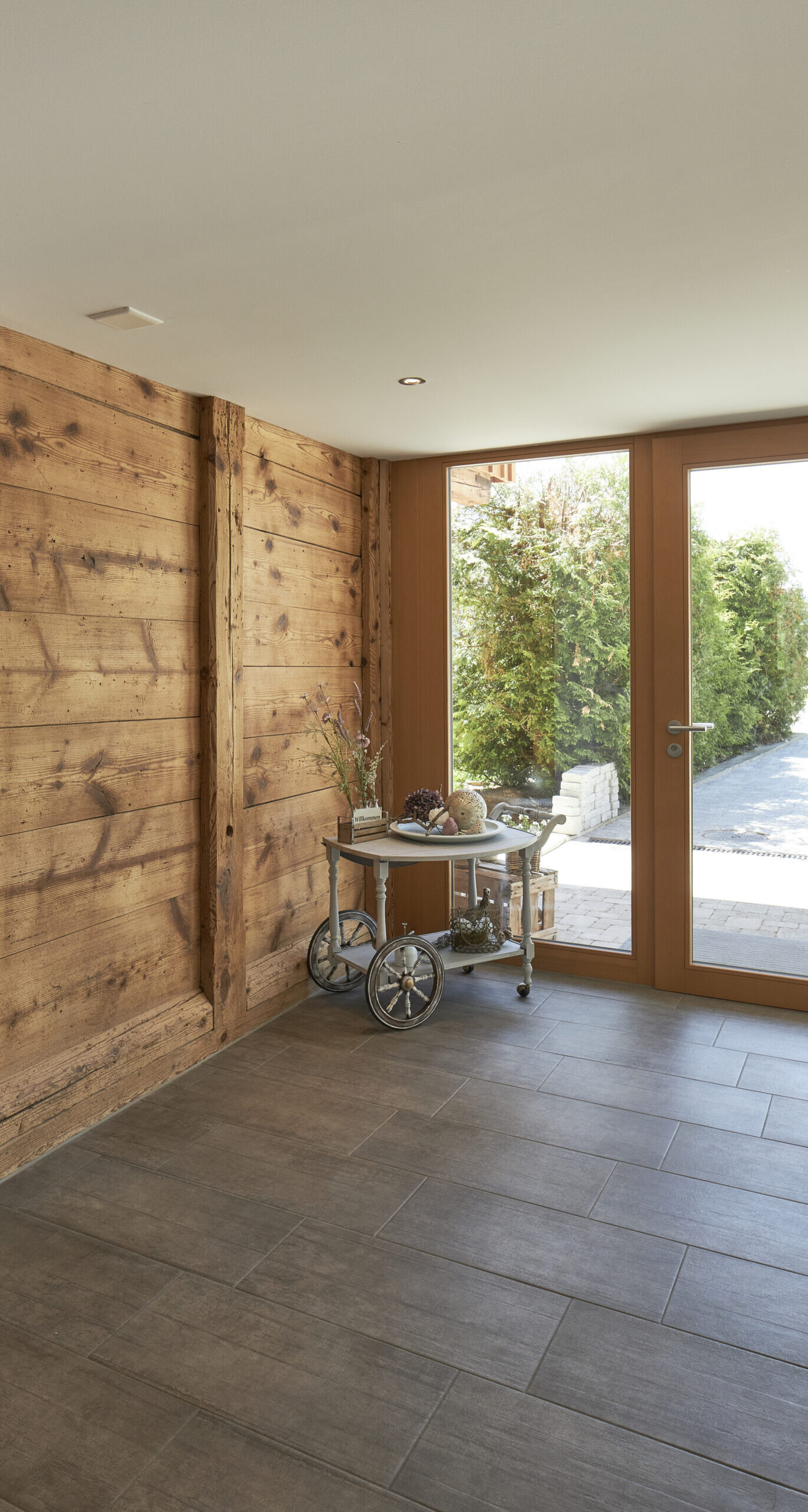 Neben den Fundamenten und Bodenplatten aus Stahlbeton und Schaumglasdämmung wurde das gesamte Gebäude mit Holz gebaut – im ehemaligen Stall konnte die alte Bruchsteinmauer erhalten werden. Dazu kommt die komplette Gebäudehüllensanierung im Minergie-A-Standard inklusive Wärmeschutz.